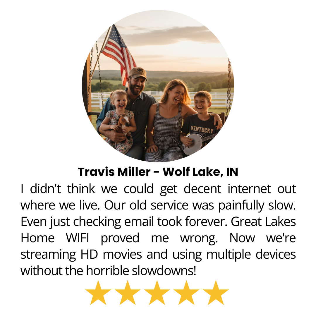 Are you tired of slow, unreliable internet? Frustrated with limited options living in the country? Are buffering videos, outages, and missed shows and movies a regular part of your daily online experience? Are you paying for a service that consistently underperforms, leaving you feeling disconnected? At Great Lakes Home WIFI, we understand country living and the struggles of finding reliable internet service.